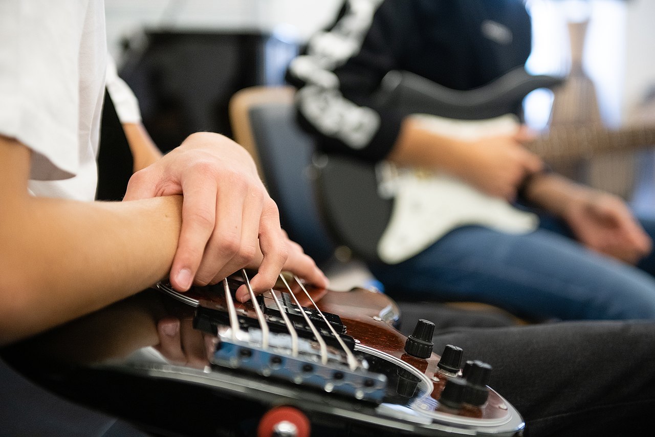 Schreibe mit anderen. Jede und jeder hat einen eigenen Zugang und man kann viel voneinander lernen. Das gilt sowohl fürs Texten als auch fürs Komponieren. Am Anfang kann es schwierig sein, eine gemeinsame Richtung einzuschlagen. Hier hilft es, wenn ihr bereits mit Ideen oder Titel-Vorschlägen in die Songwriting-Session startet. Seid aufrichtig und sagt ehrlich, ob ihr eine Idee gut findet oder nicht. Nur so kommt ihr zu einem Ergebnis, mit dem ihr zufrieden seid.