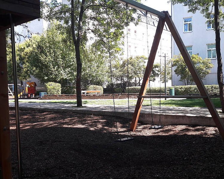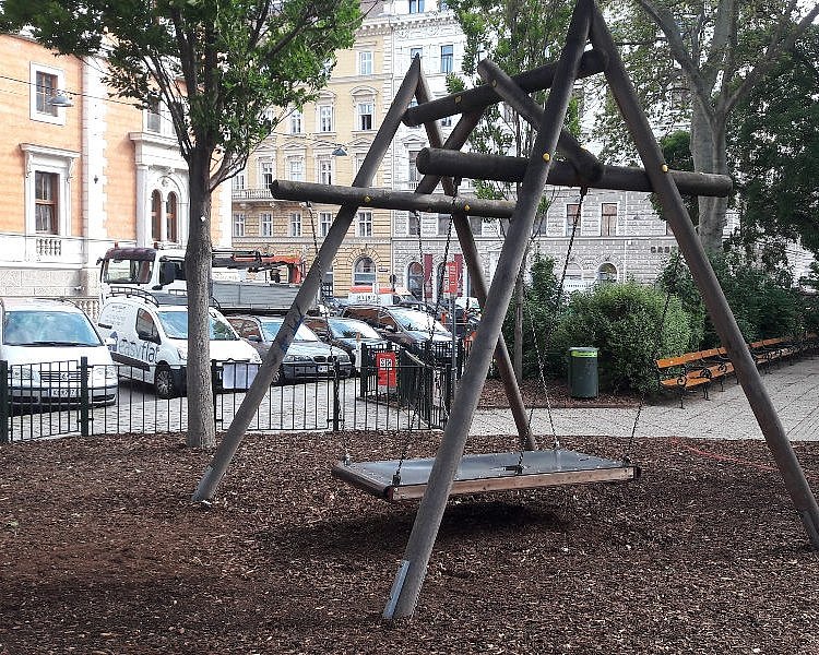 Sicher gibt es in Wien auf mehreren Spielplätzen Schaukeln, die an einem besonders langen Seil hängen. Mir ist die im Scheupark im 5. Bezirk aufgefallen. Mit so einer Schaukel kann man weit schwingen und das fühlt sich echt fein an.