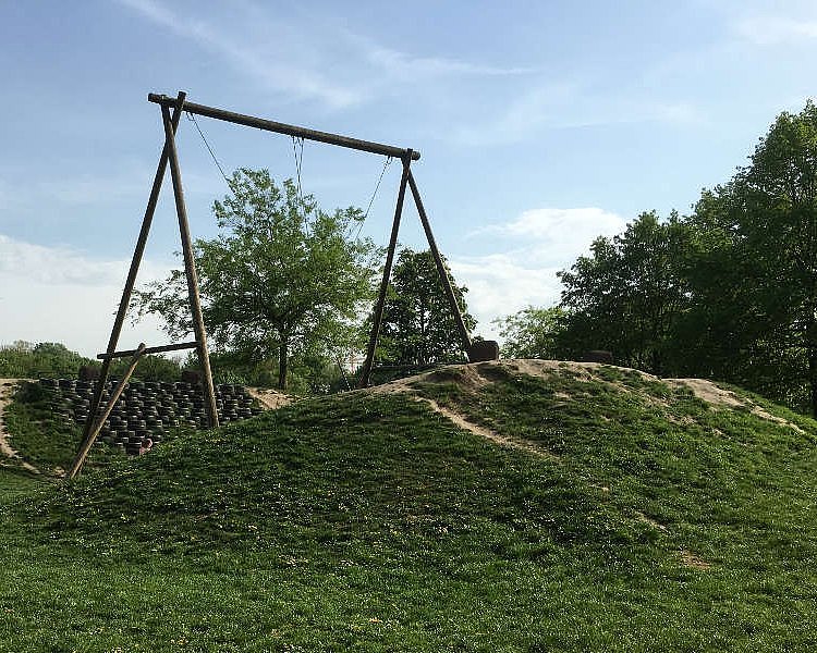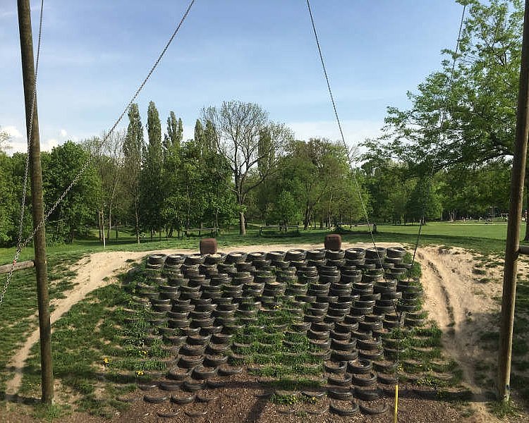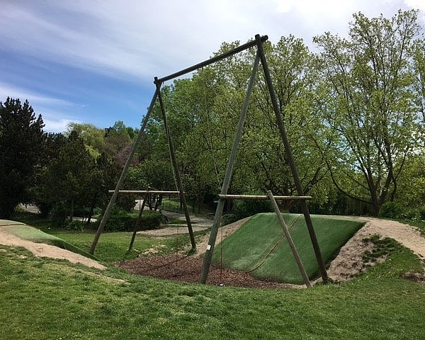 Kennt ihr diese Schaukeln, die sich zwischen zwei steilen Hügeln befinden? Schon das Hinaufziehen der Tellerschaukel ist da gar nicht so einfach. Dafür ist das Pendeln dazwischen dann wirklich ein ganz besonders cooles Erlebnis. So eine Pendelschaukel haben wir im Kurpark Oberlaa und auf der Jesuitenwiese entdeckt.