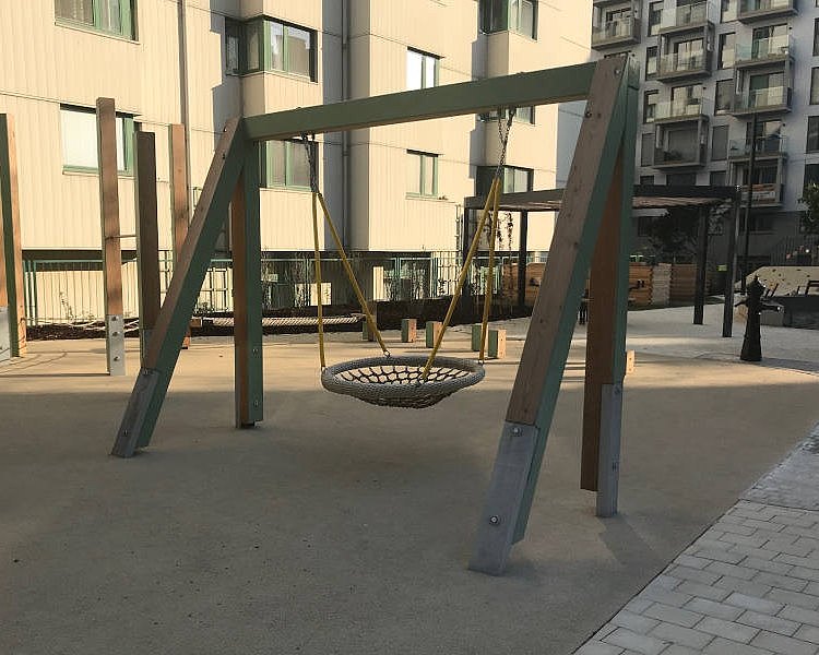 Seilschaukel und Stahlbogenschaukel im Motorikpark
