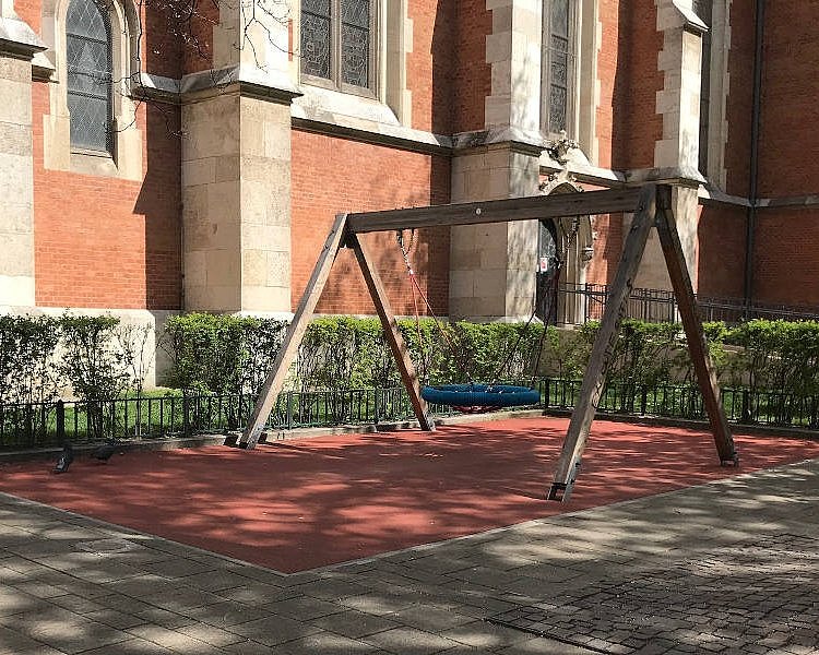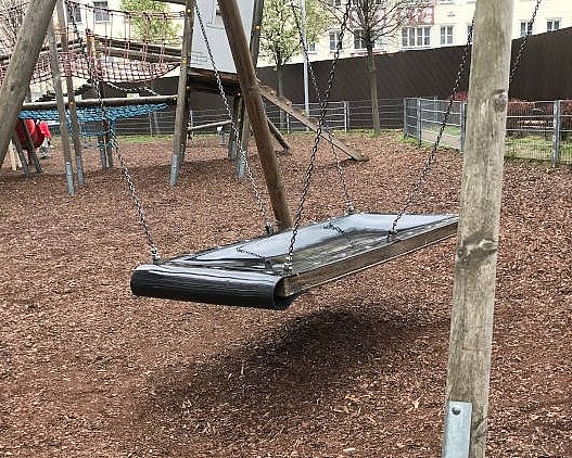 Der Bacherpark im 5. Bezirk wurde vor vielen Jahren zu einem richtig tollen Spielplatz umgebaut. Dort gibt es auch eine Schaukel, die aus einer breiten Gummiplane besteht. Man kann darauf stehen oder sich hineinlegen, beides bietet ein feines Schaukelerlebnis. Ich konnte leider nicht herausfinden, wie so eine Schaukel wirklich genannt wird, daher nenn ich sie den Schaukelteppich. Außerdem haben auch einige Nestschaukeln auf Fallschutzboden, die im Grete Salzer Park im 12. Bezirk steht.