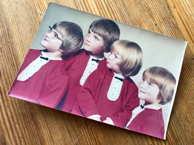 Ein Foto, das ich noch immer sehr gern mag, entstand bei einem Fotografen zum 80. Geburtstag meiner Mutter. Meine 5 Schwestern und ich sollten uns auf einen kleinen Hocker setzten. Das wurde ein richtig gutes Foto. Denn das Gerangel darum, die spielerische Freude dabei und die körperliche Nähe, die sind im Bild festgehalten. Und keine von uns hatte da noch einen Gedanken für die eigene Selbstdarstellung übrig. Immer, wenn ich das Bild anschaue, dann erinnere ich diesen lustigen Moment und freue mich darüber, dass wir den Moment geteilt und festgehalten haben. Also vielleicht auch eine Idee für euer nächstes Familienfoto.