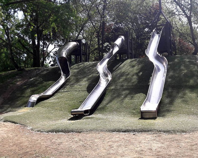 - die lange Hangrutschen am Spielplatz auf der Jesuitenwiese im 2.,