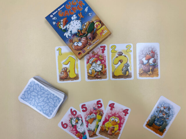 Witzig, einfach zu lernen und schnell gespielt – in diesem Kartenspiel sammelt ihr Hühner – vom Küken bis zum ausgewachsenen Hahn.