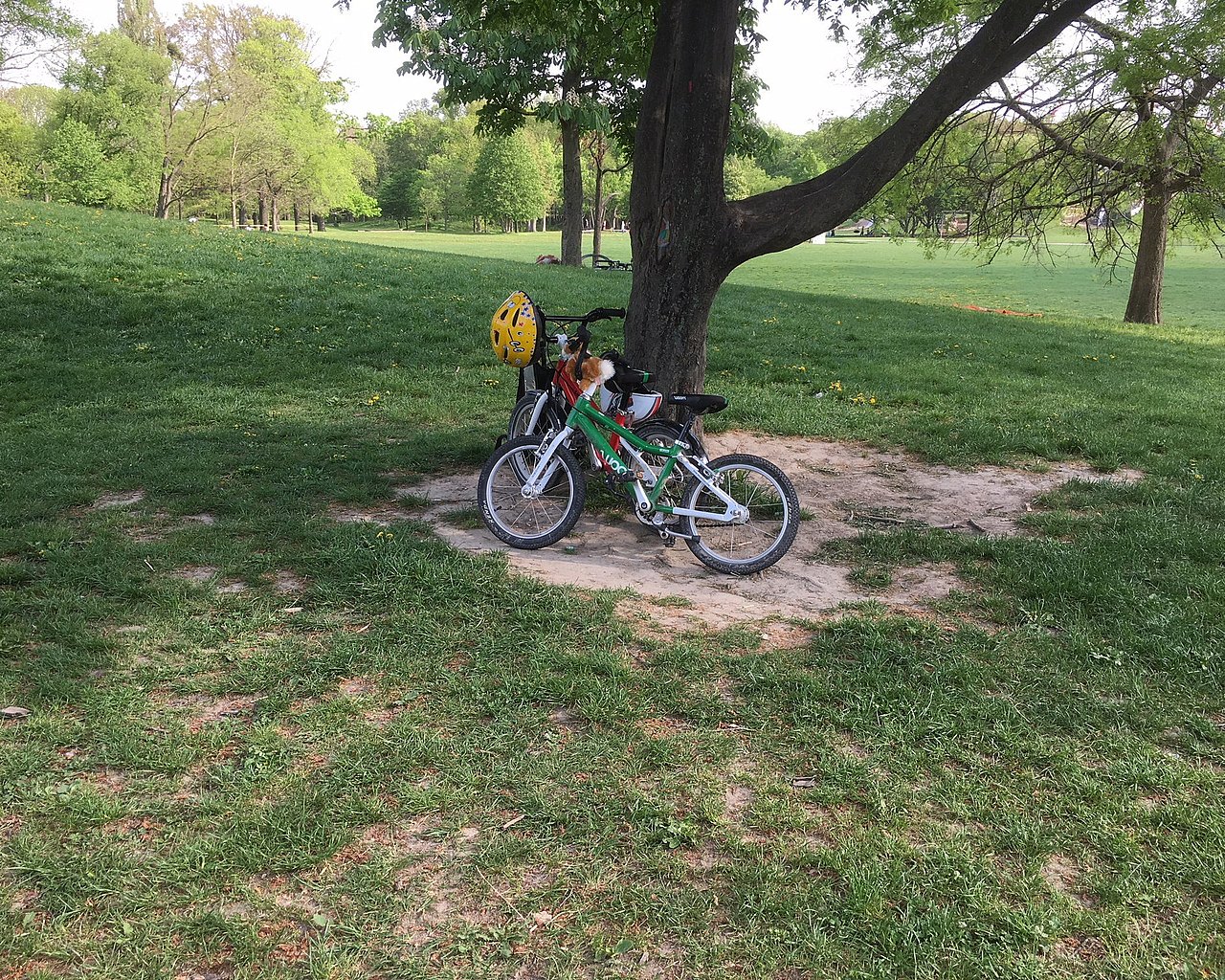 Schön an diesem Spielplatz ist, dass dort trotz Gewusel Raum bleibt. Direkt an den Spielplatz schließt ein Wäldchen an, das Schatten spendet und natürlich die große Wiese. Picknicken, Ballspielen oder Slacklinen, Räder schlagen, Handstand üben – all das kann man hier wunderbar. Auch mit dem Rad den grünen Prater zu erkunden ist eine herrliche Alternative – egal ob im eigenen Kinderrad oder im Kindersitz. Wenn man mag, kann man einen Spielplatzbesuch gut mit einer Fahrt mit der Liliputbahn im Prater kombinieren. Die Ausstiegsstelle Rotundenallee ist einen Fußmarsch entfernt, ungefähr gleich weit wie die Straßenbahnhaltestelle. Und ein Stück weiter unten im Prater ist das Stadionbad, das zu den schönsten Bädern Wiens zählt und gerade für Familien super ist.