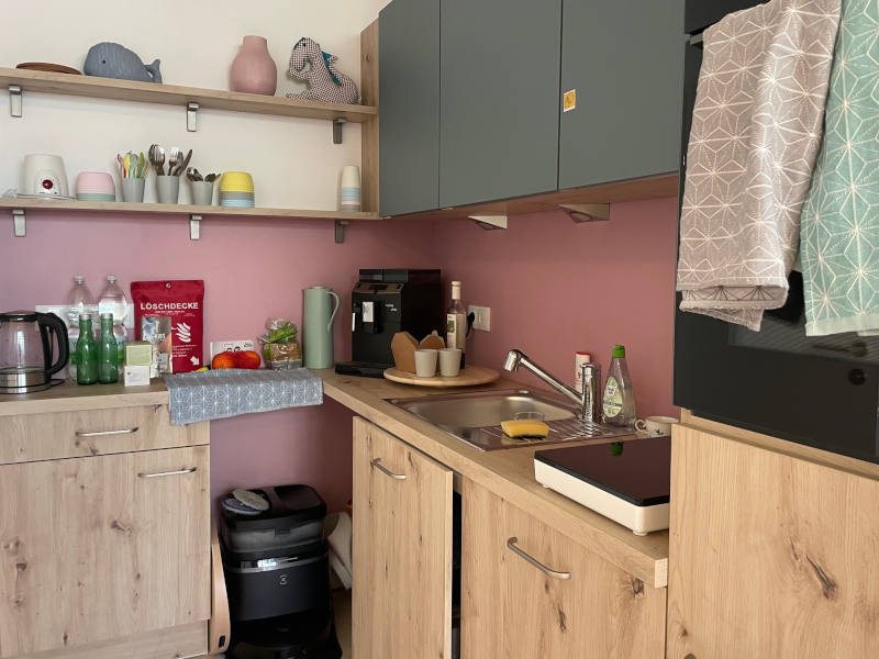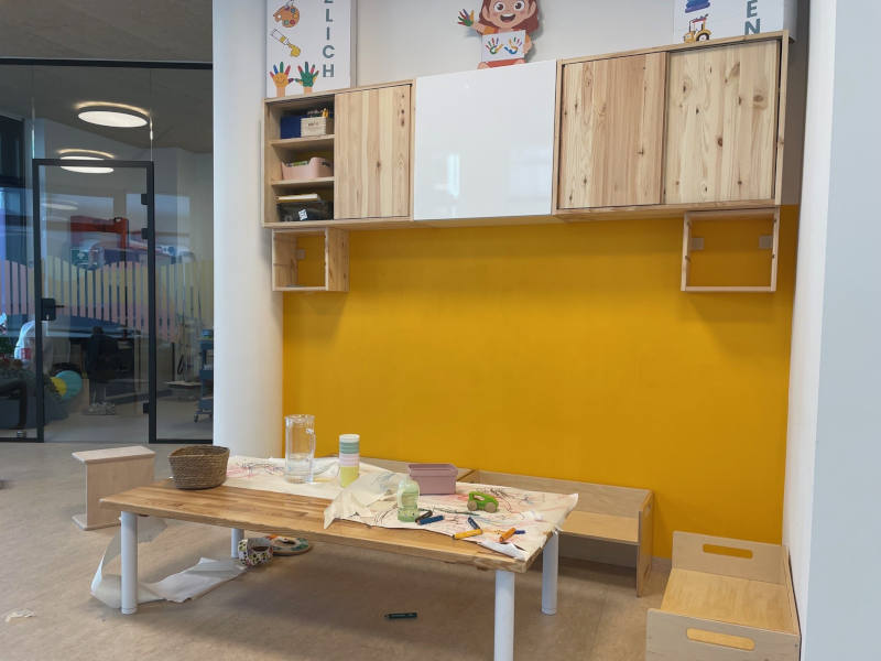 Das mini* kann man auch buchen. Da stehen die Räume für Elterntreffen oder private Anlässe wie kleine Feiern kostenlos zur Verfügung. Dieser Raum ist nämlich als Teil eines offen gedachten Shared-Space-Konzepts gedacht, das Mehrfachnutzung und Eigeninitiative fördern soll.