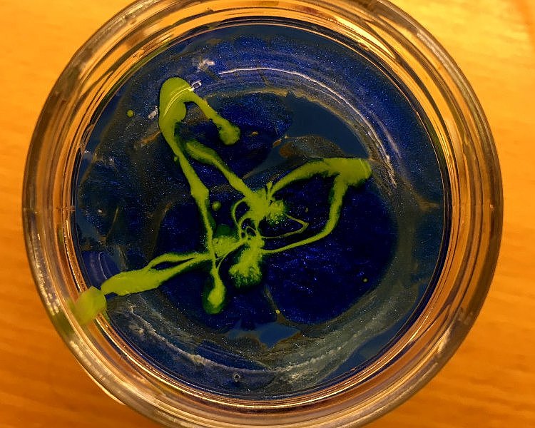 - Gebt nun ein 2-3 Tropfen Nagellack ins Wasser. Nicht mehr, da es sonst eine einheitliche Färbung würde.