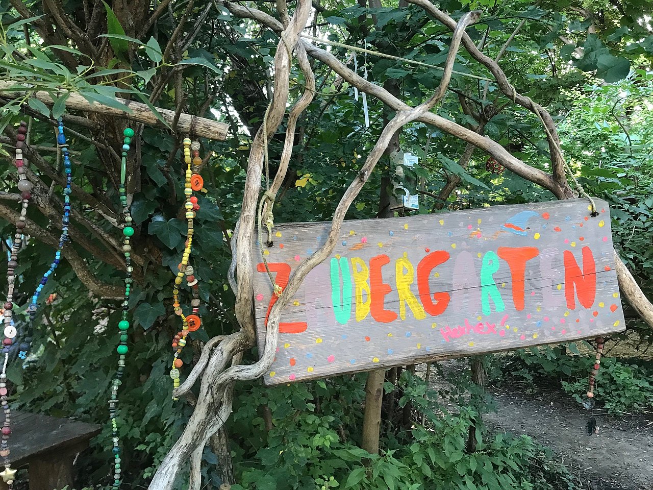 Eine kleine Sandkiste zwischen Hecken, viele Fußpfade und dazwischen Hüttchen, Weidenhöhlen und abenteuerliche Kletterpfade. Aber auch ein Schildkröten- und Gänsegehege sowie ein kleines Biotop sowie verschiedene Werkstätten, die mit den Betreuer*innen genutzt werden können, laden zum Spielen ein. Auch den Steilhang, den man mit einem Seil bezwingen kann und die Nestschaukel wo man sich auf halber Höhe durch die Lüfte schwingt sind noch so beliebt wie schon vor Jahren.