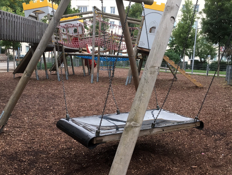 5., Spielplatz im Bacherpark – Teppichschaukel, allerdings auf Fallschutzrinde
