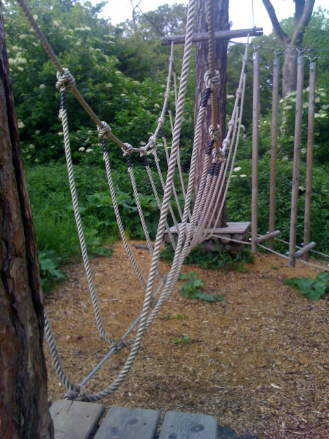 - Es gibt auch tolle Spielplätze, die an Hochseilgärten heranführen und Elemente haben, die sich in luftigen Höhen abspielen:
