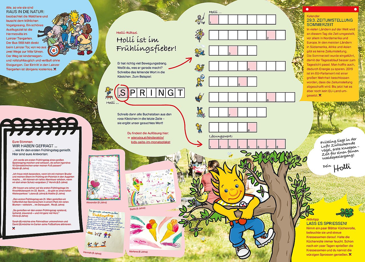 Kennst du schon unser neues Holli-Poster? Es kommt jeden Monat und hat immer lustige Rätsel oder Ideen für euch. Hier kannst du sie anschauen oder herunterladen. Möchtest du den Kinderaktiv-Folder mit Holli-Poster per Post bekommen, kannst du es auch als Abo bestellen - natürlich kostenlos.
