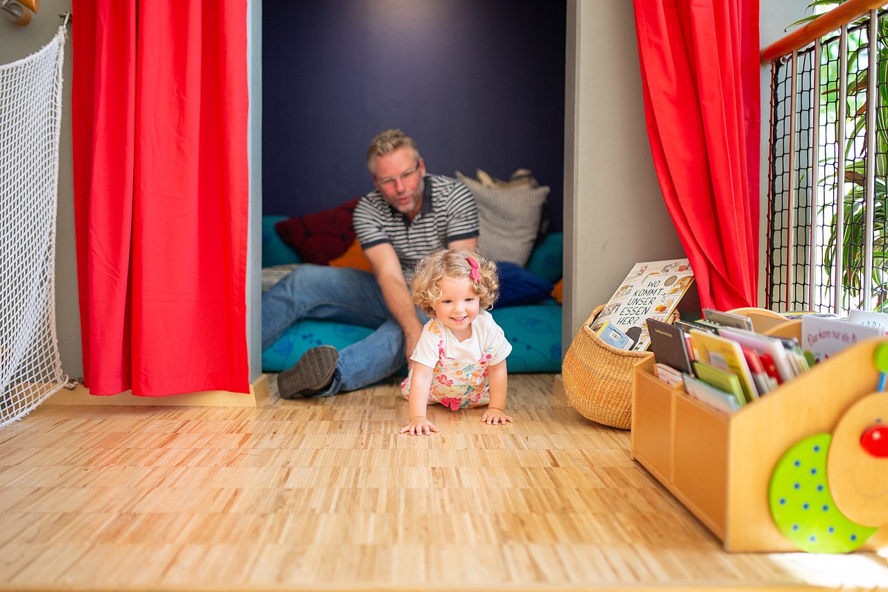 Die Kinderinfo ist barrierefrei mit Rollstuhl und Kinderwagen zugänglich. Die Eingangstüre ist 95 cm breit und kann auf 180 cm erweitert werden.