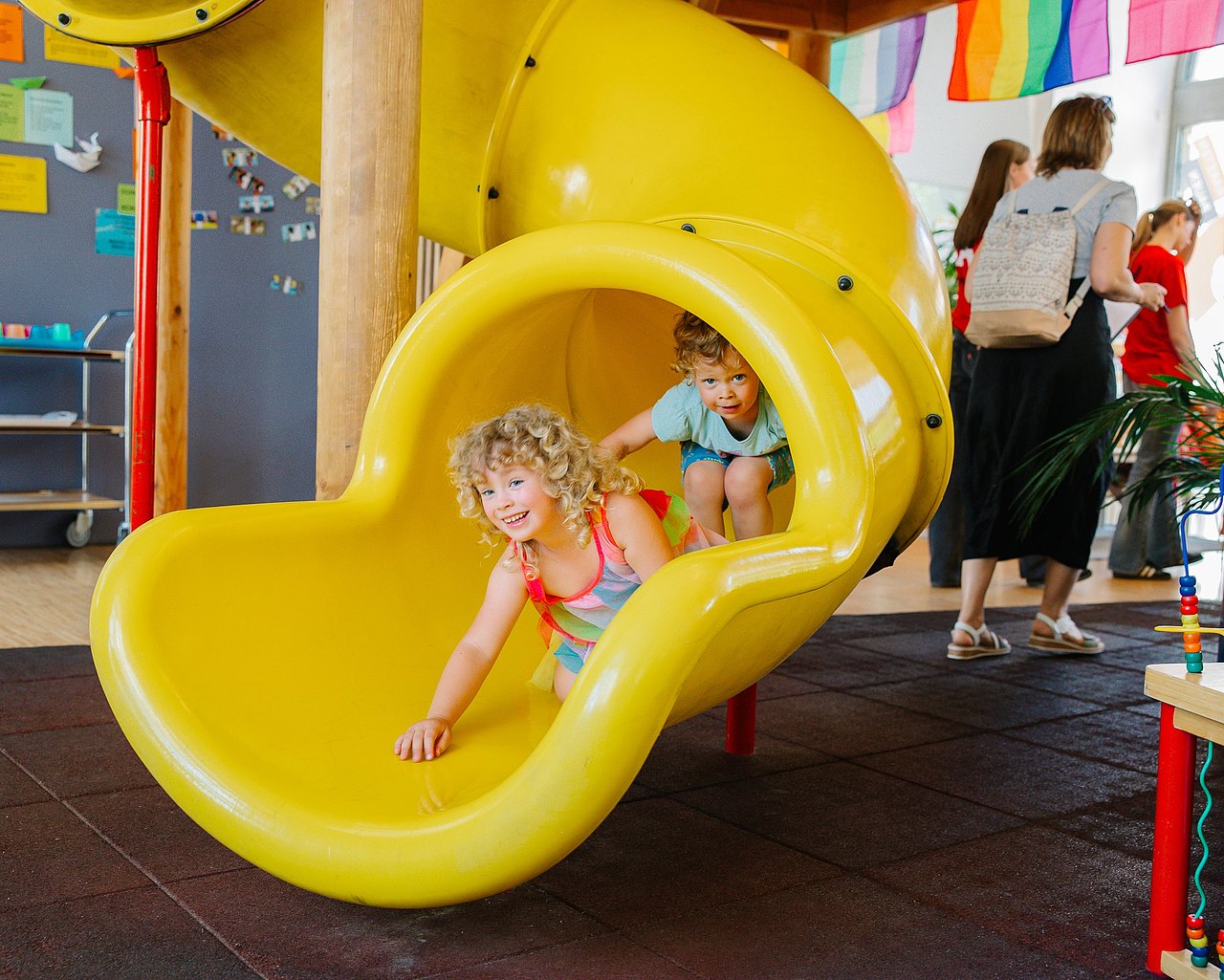 Die Kinderinfo-Räumlichkeiten sind barrierefrei zugänglich und so ausgestattet, dass Besucher*innen sich wohlfühlen. Es gibt Spiel- und Beschäftigungsmöglichkeiten für Kinder, einen Wickeltisch, Trinkwasser, einen Mikrowellenherd zum Aufwärmen von Babynahrung und zwei Rollstuhl-gerechte WCs.