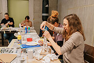 Am Nachmittag konnten die Teilnehmer*innen zwei von sechs Workshops wählen. Dort konnten sie gemeinsam reflektieren sowie Neues erfahren und ausprobieren. Die Angebote kamen aus Kunst, Kreativität, Spiel und politischer Bildung.