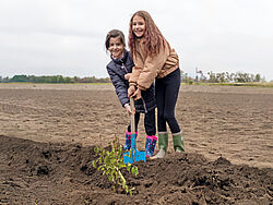 Für das Jubiläum 40 Jahre "Wald der jungen Wiener*innen haben die Förster*innen 10.000 Bäume und viele Spaten vorbereitet.