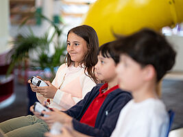 In den Games-Workshops stehen zahlreiche Konsolenspiele für Kinder von 7 bis 13 Jahren zum Testen bereit. Unterstützung gibt's dabei von erfahrenen Spielebox-Mitarbeiter*innen!